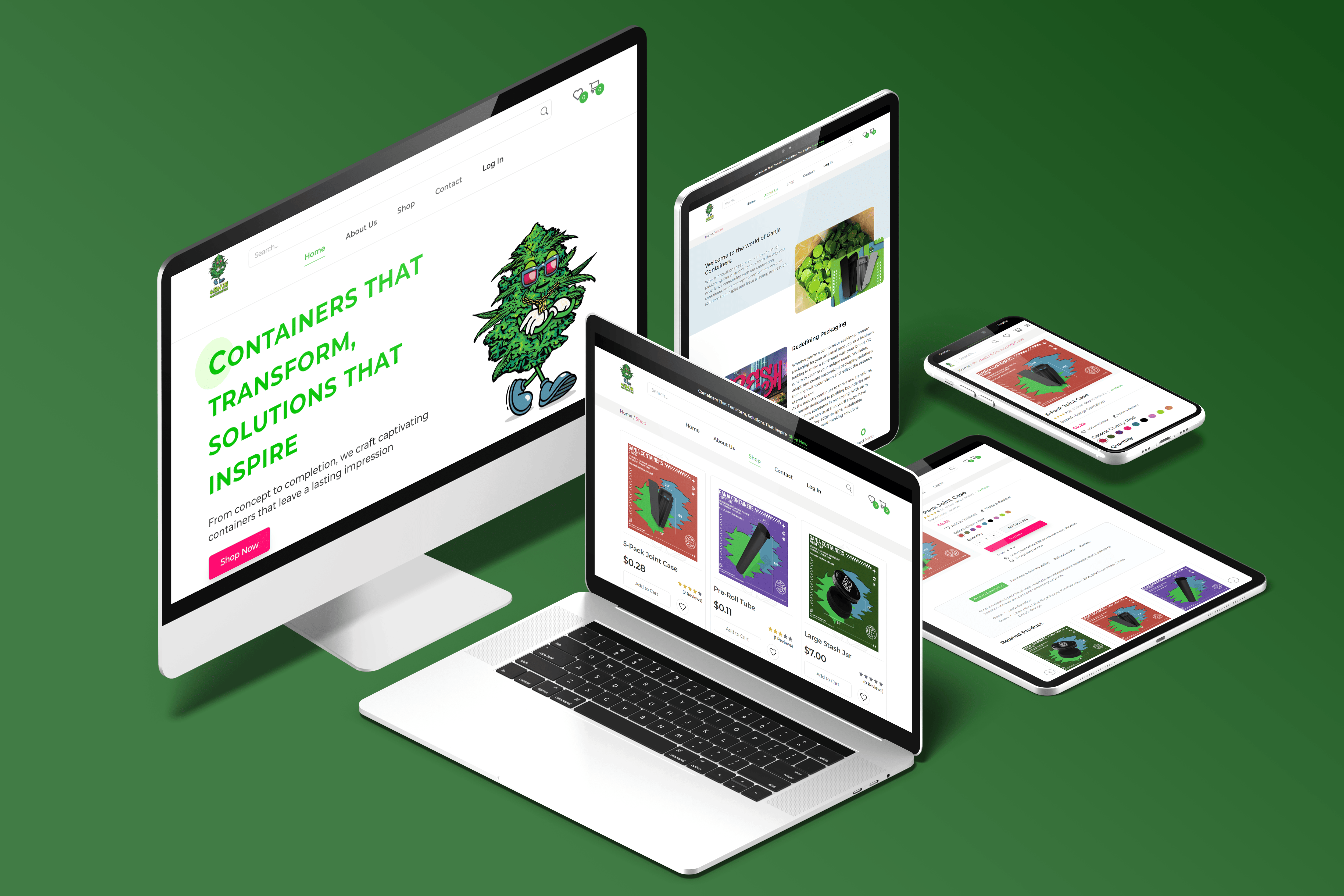 The outcome of our collaboration is a visually striking and functional ecommerce platform that not only meets but exceeds Ganja Container's expectations. The website reflects the essence of their brand, providing a convenient and enjoyable space for cannabis enthusiasts to explore and purchase quality products.