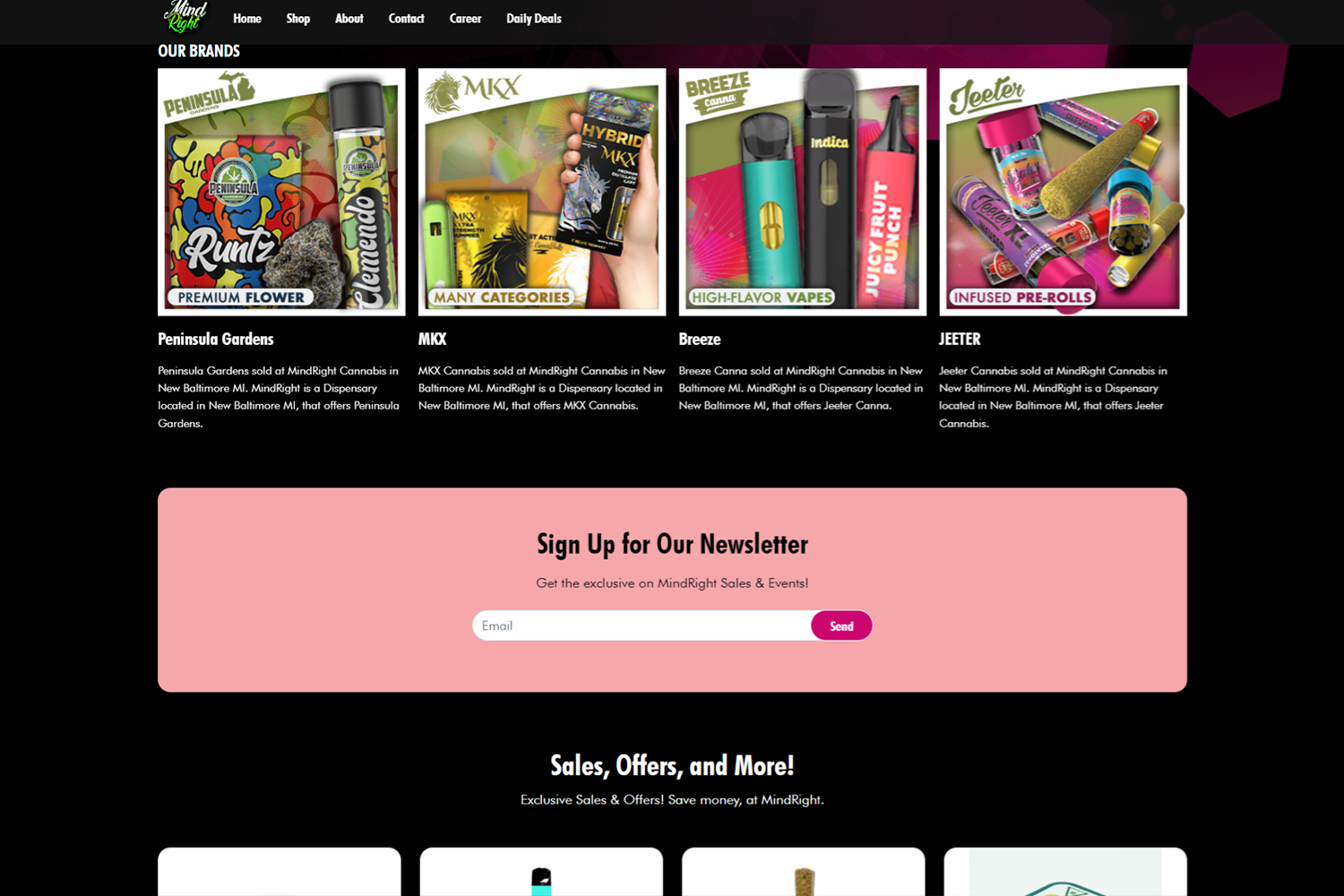 For Mind Right MI, Neutrix created a custom standard website that showcases their brand and services beautifully. Our team provided photography and videography services, as well as a custom sketch logo and other content creation. We also integrated the site with Instagram API and Dutchi API, enhancing its functionality. The result is a visually appealing and functional website that accurately represents Mind Right MI's brand and services.